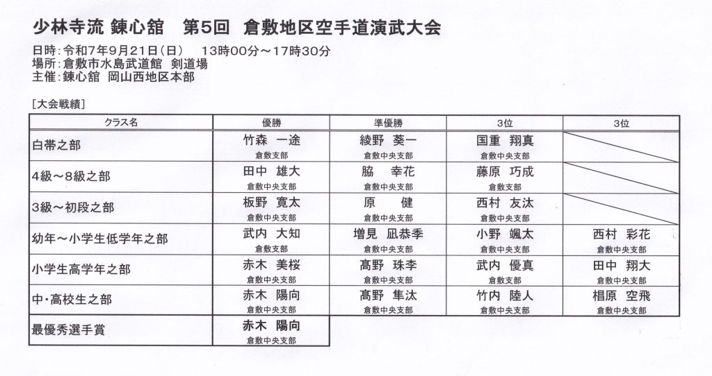 一番身近な大会で気迫あふれる試合。倉敷地区のレベルが向上しているのが肌で感じました。