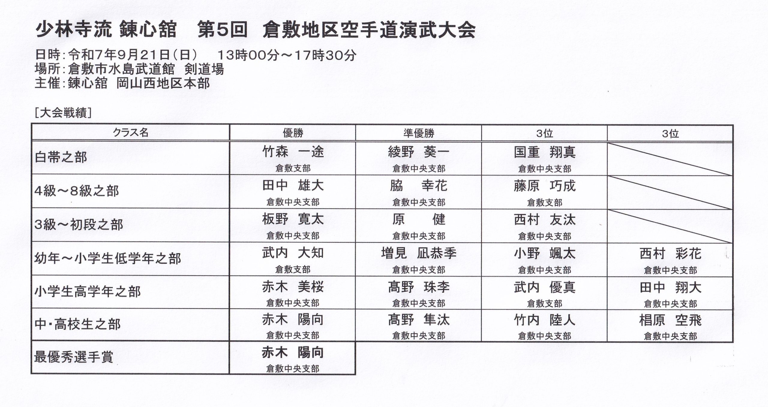 月21日(日)倉敷市水島武道館にて第5回倉敷地区空手道演武大会を開催しました。