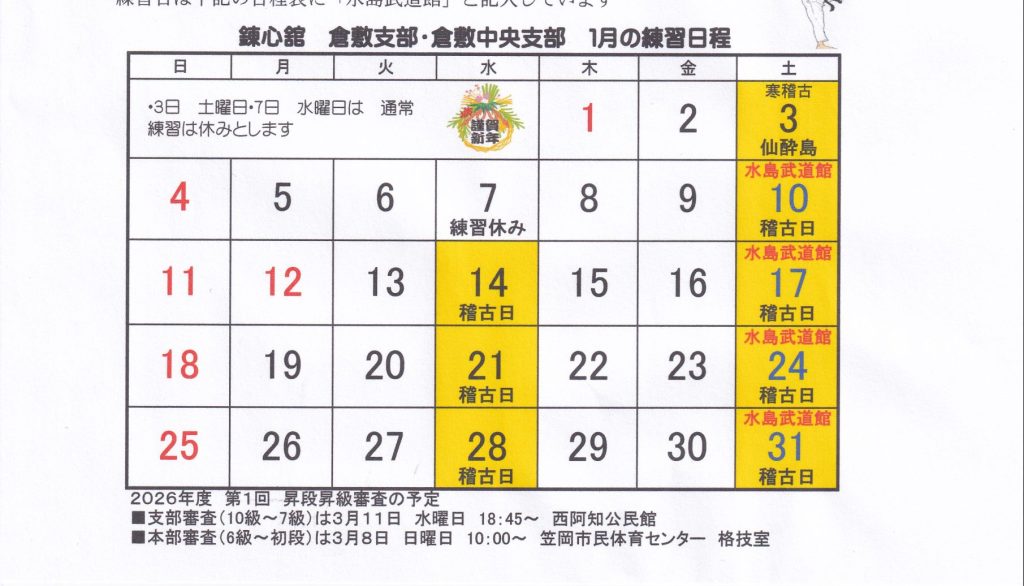 倉敷支部・倉敷中央支部練習カレンダー